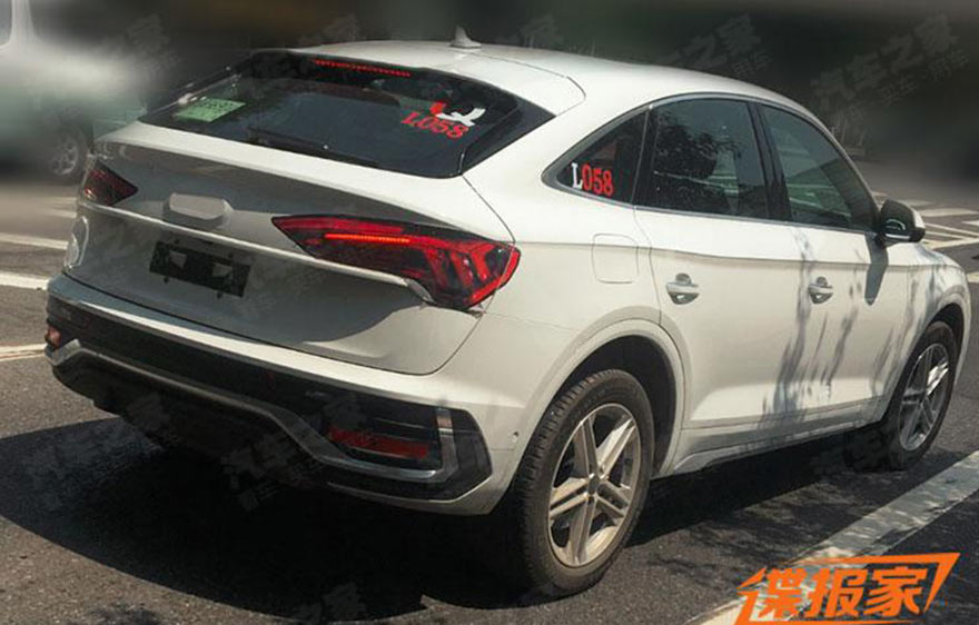 Pripravované, nové Audi Q5 Sportback vidieť na fotografiách v podstate bez maskovania, iba cez zadné svetlá je nalepená nejaká páska, ktorá ich sčasti zakrýva. Aj tak je z toho vidieť, že dostali zadné svetlá pozmenený dizajn v porovnaní so zadnými svetlometmi umiestnenými na bežnej Q5.