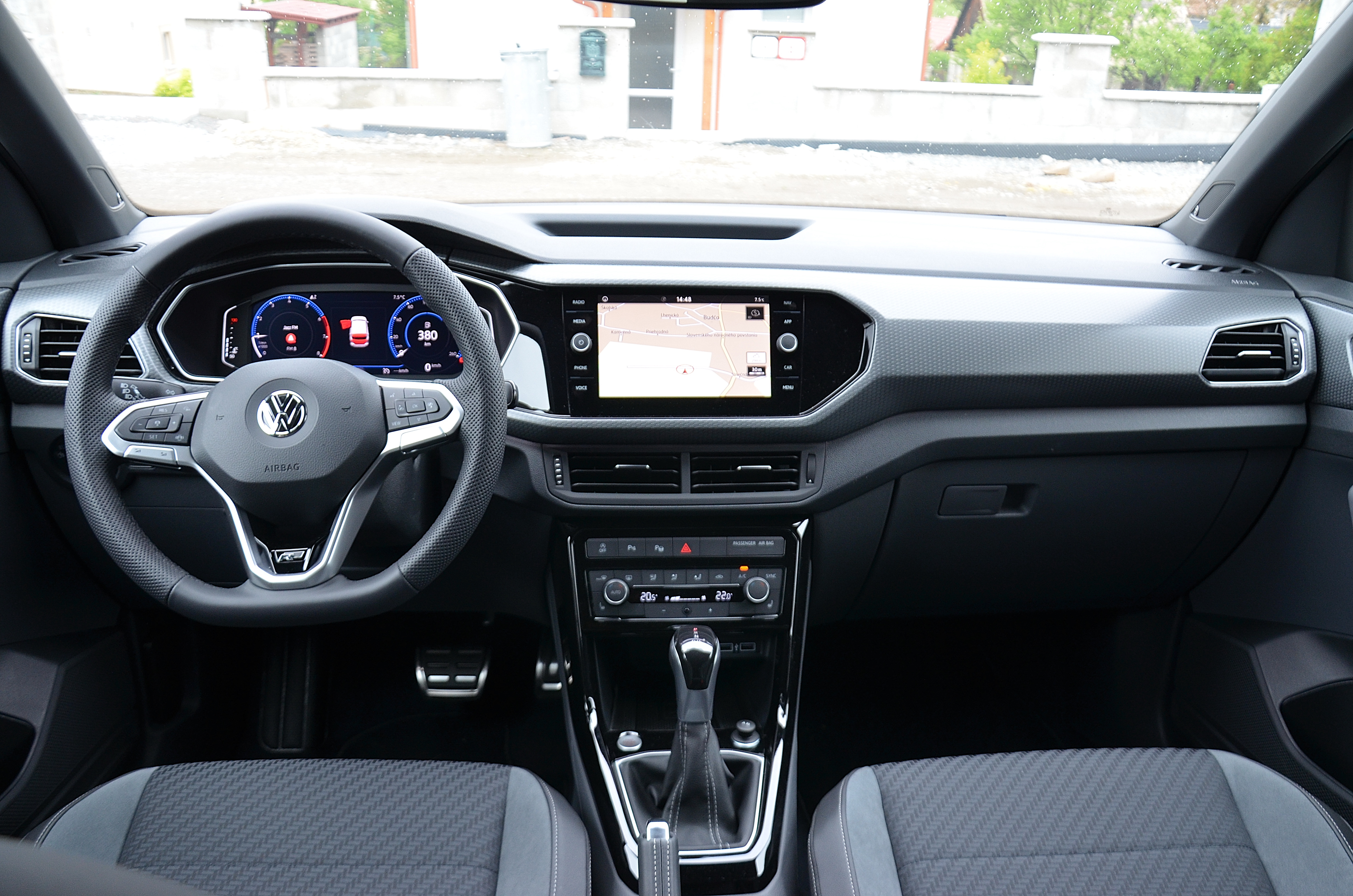 T-Cross má inak dve úrovne výbavy, základnú Life a vyššiu úroveň výbavy Style. Vo výbave Life je dispozícii štandardne 6,5 palcový infotainment s dotykovým displejom, multifunkčný volant, parkovací asistent, manuálna klimatizácia. Pri výbave Style už dostanete LED svetlá, 8 palcový dotykový displej, kožený paket, lepšie sedačky a automatickú klimatizáciu, atď. Výbavy Life a Style je možné rozšíriť športovým balíčkom R-Line, tak ako bol vybavený náš T- Cross.