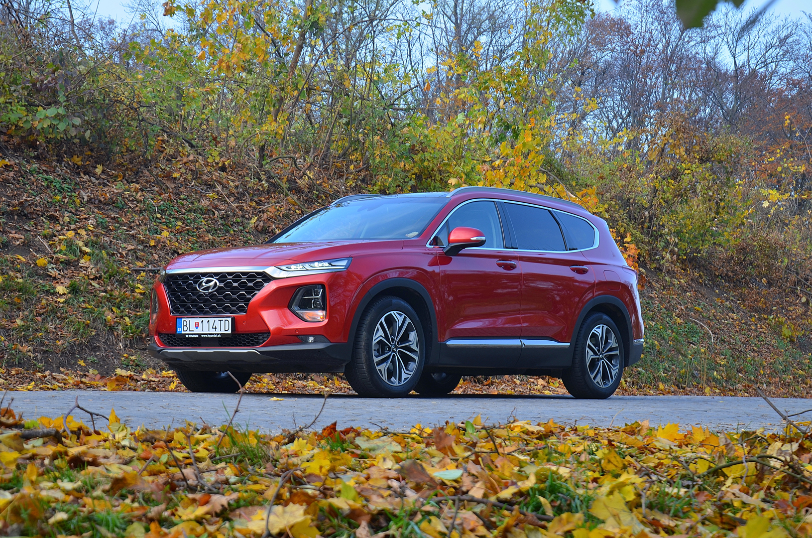 Nový Hyundai Santa Fe, v poradí už štvrtá generácia, je v kombinácii s výrazne farebnou metalízou Horizon Red (dodávanou štandardne) a efektnými 19“ zliatinovými diskami kolies v záplave automobilovej šedi neprehliadnuteľný.