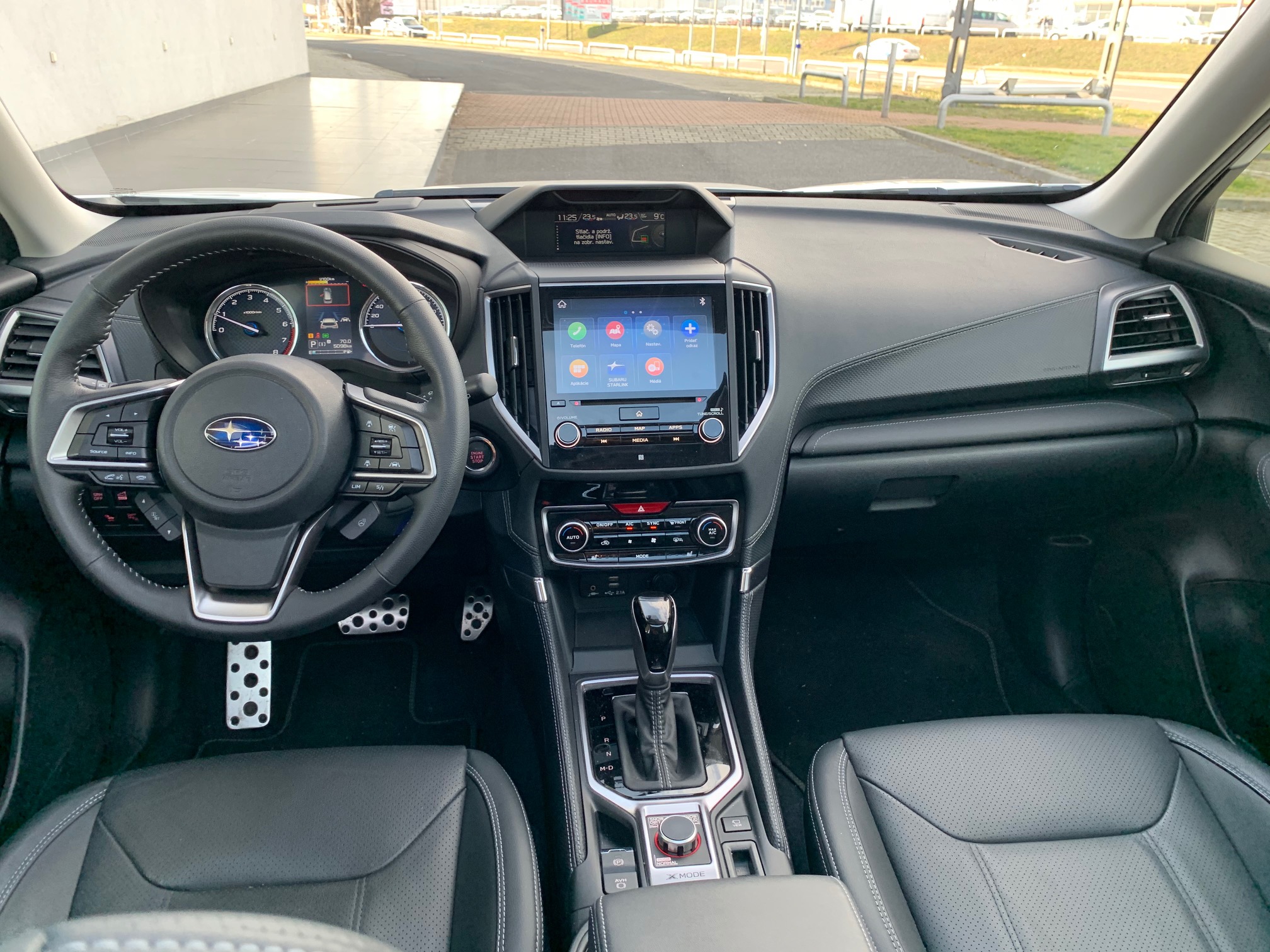Prístrojovému panelu dominuje 8“ dotyková obrazovka (grafika pôsobí modernejšie a kvalitnejšie ako pri predchodcovi) a tradične, ako máva Subaru, je kombinovaná s menšou obrazovkou umiestnenou v hornej časti palubnej dosky.